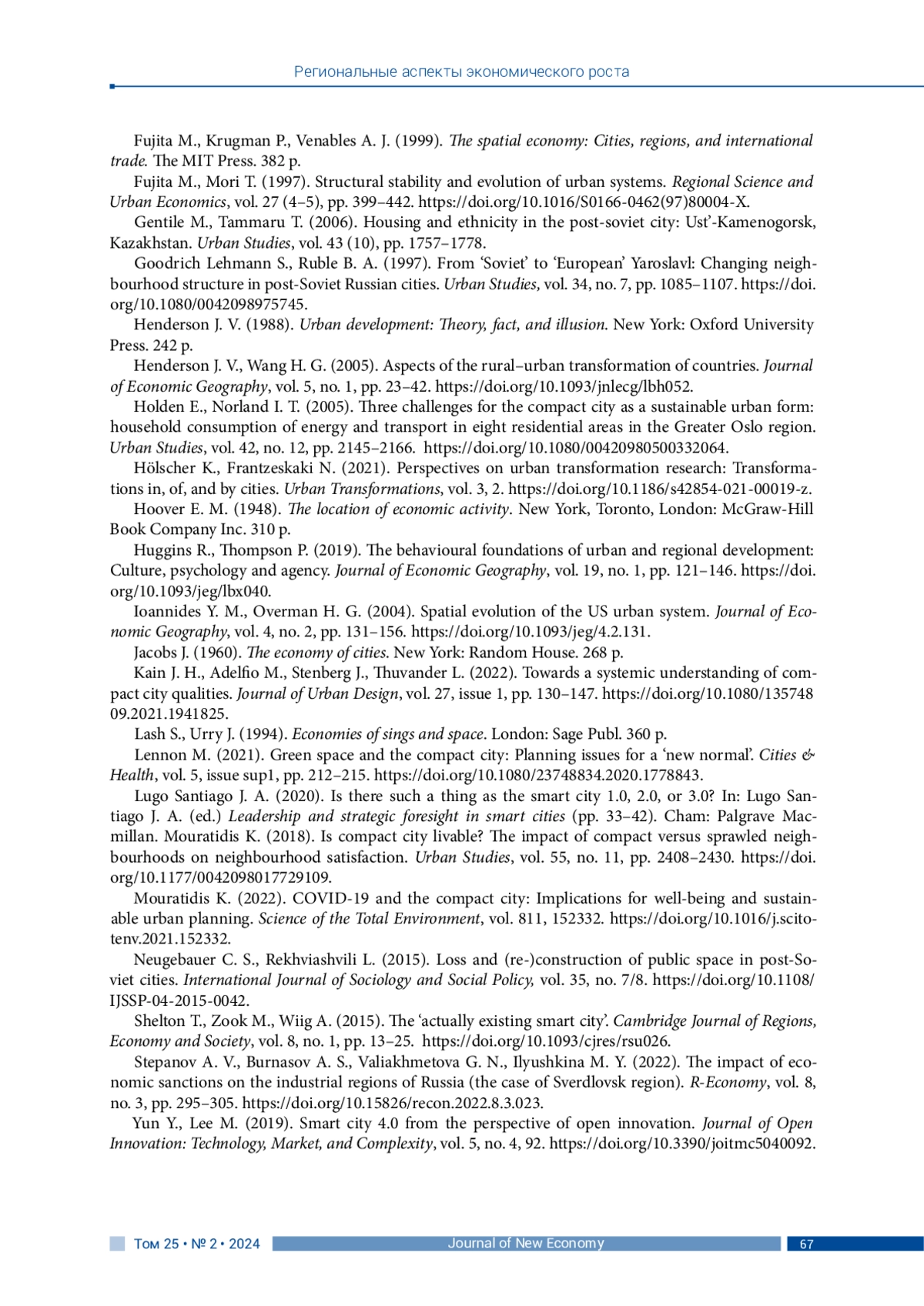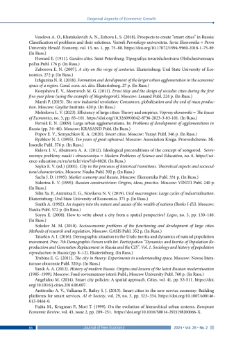 14. Мельникова Л. В. (2023). Эффективность больших городов: теория и эмпирика // Вопросы экономики. № 3. С. 83-101. DOI: 10.32609/0042-8736-2023-3-83-101 EDN: GMUYJI