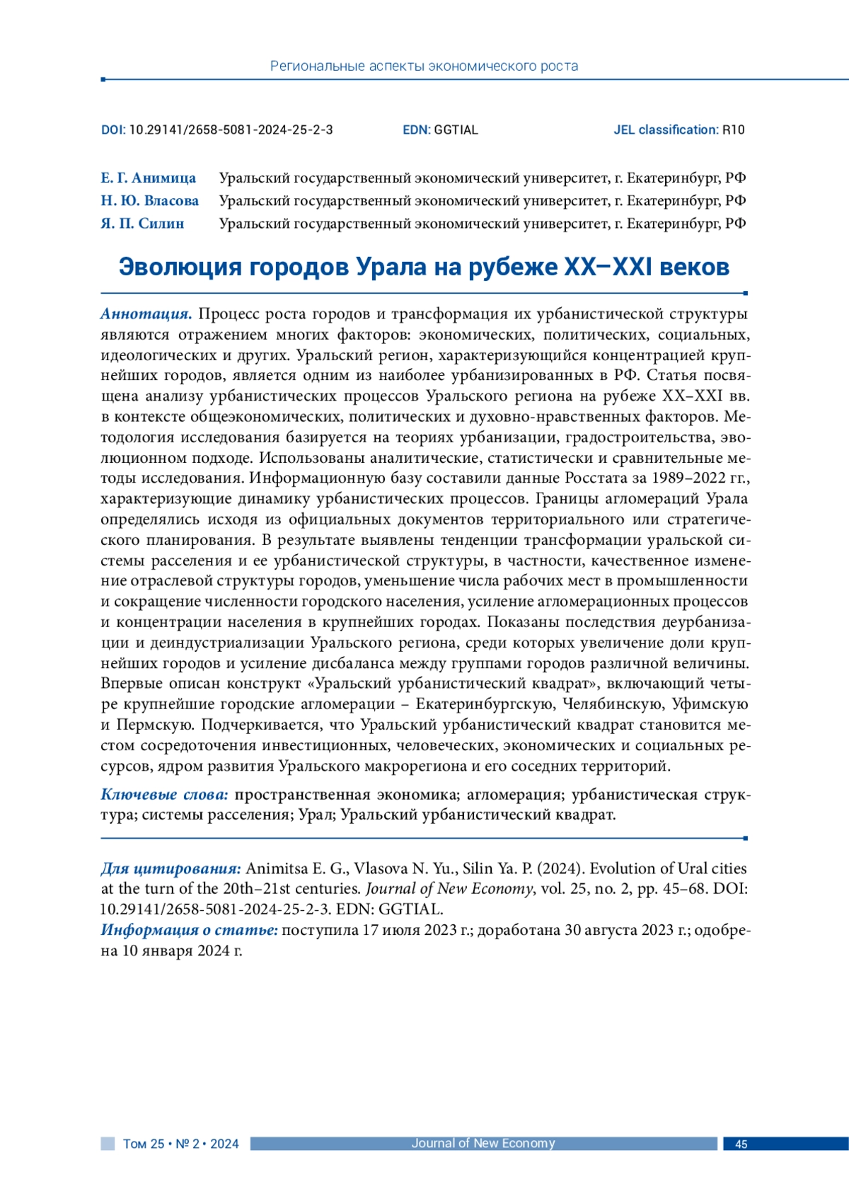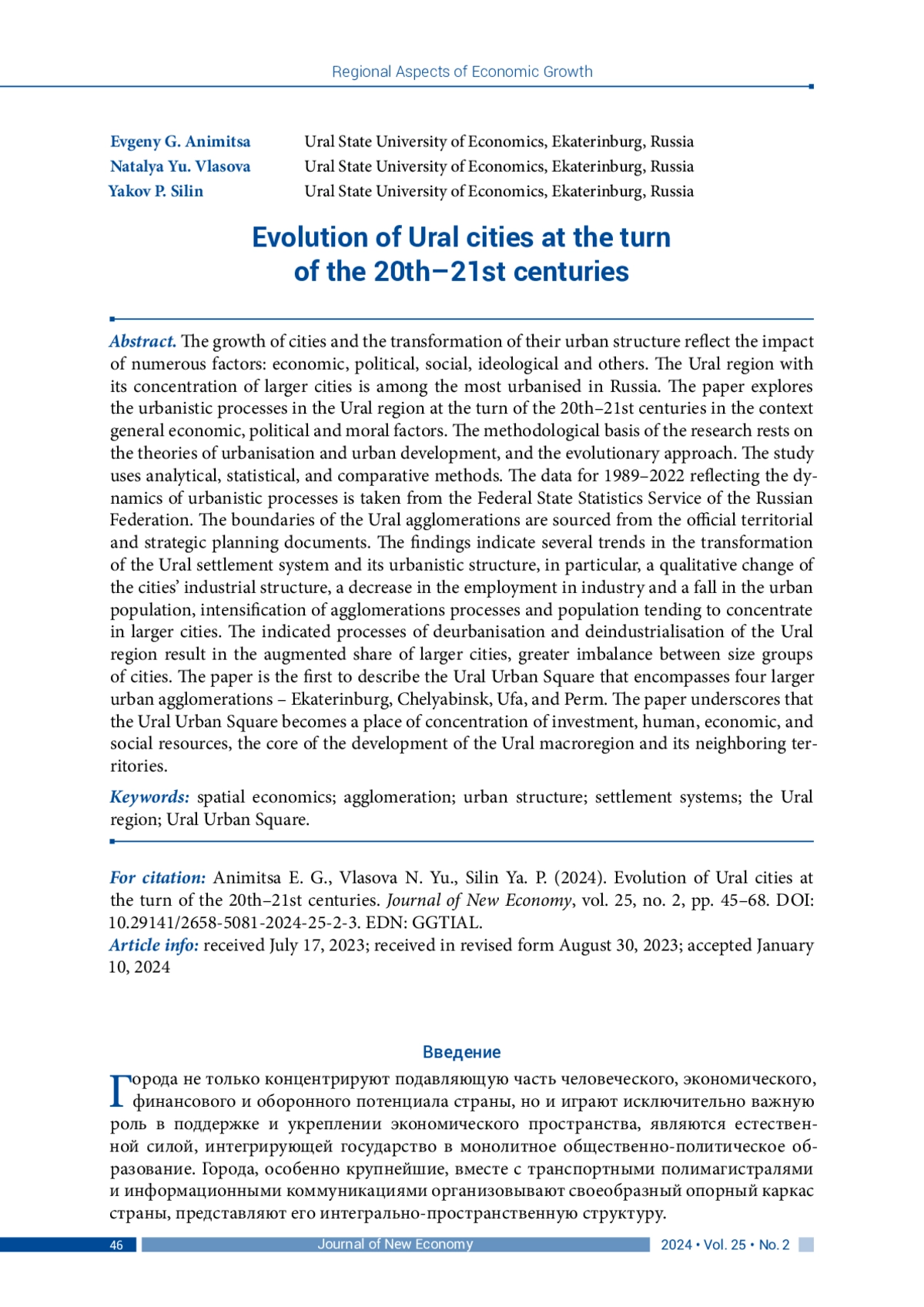 22. Силин Я. П., Анимица Е. Г., Новикова Н. В. (2019). Уральский макрорегион: большие циклы индустриализации / под ред. Глазьева С. Ю., Бодрунова С. Д. Екатеринбург: Издательство Уральского государственного экономического университета. 371 с. EDN: ETQMTU