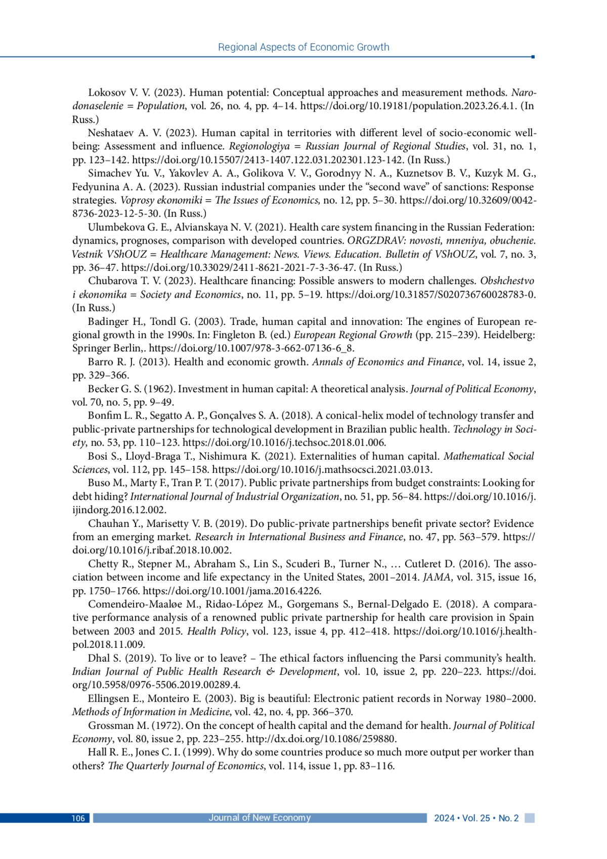 31. Yang X. (2020). Health expenditure, human capital, and economic growth: An empirical study of developing countries. International Journal of Health Economics and Management, vol. 20, pp. 163-176. DOI: 10.1007/s10754-019-09275-w EDN: SFWZUE