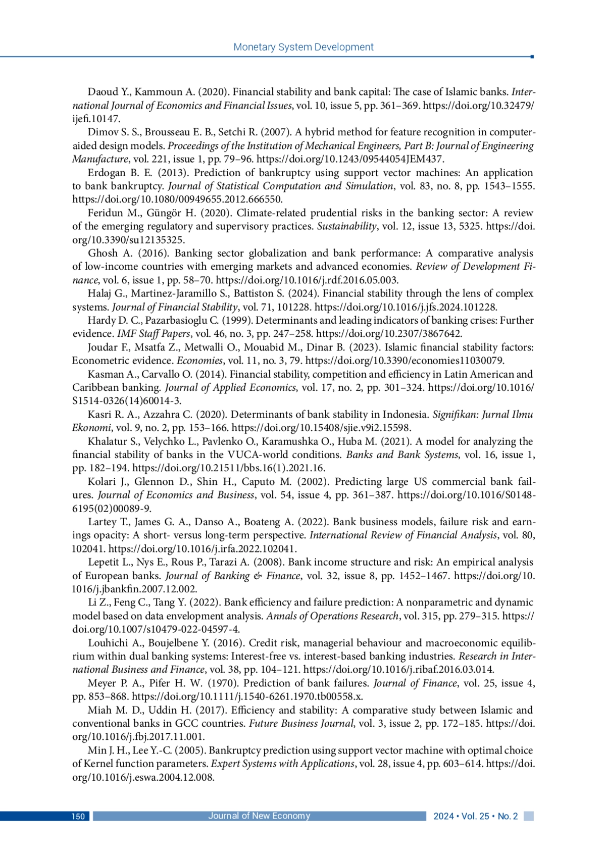 20. Citterio A. (2024). Bank failure prediction models: Review and outlook. Socio-Economic Planning Sciences, vol. 92, 101818. DOI: 10.1016/j.seps.2024.101818