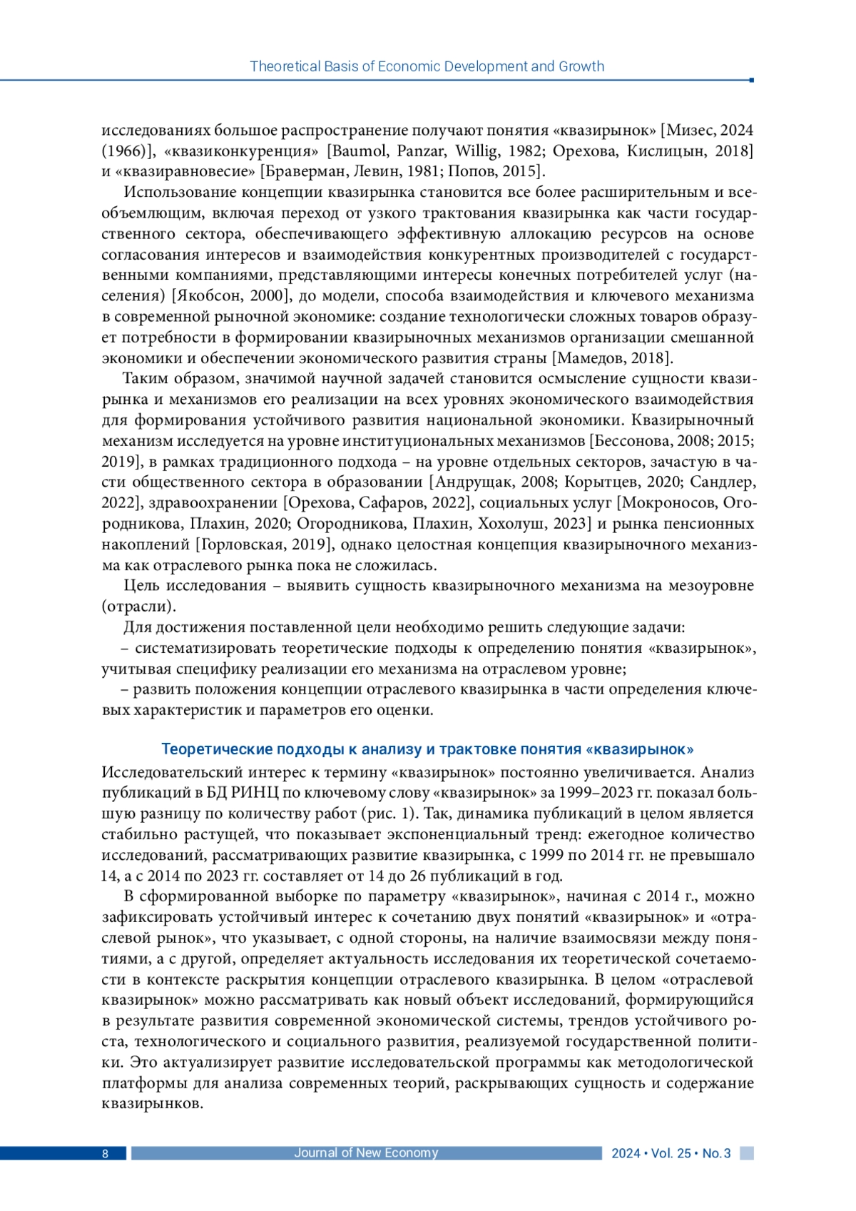 Устойчивое экономическое развитие российской экономики является проекцией множества факторов: реализуемой политики государственного дирижизма; высокой промышленной интеграции как на вертикальном, так и на горизонтальном уровне; развития современных цифровых технологий. Это приводит к существенной трансформации отраслевых рынков – на смену классическим механизмам приходит квазирынок