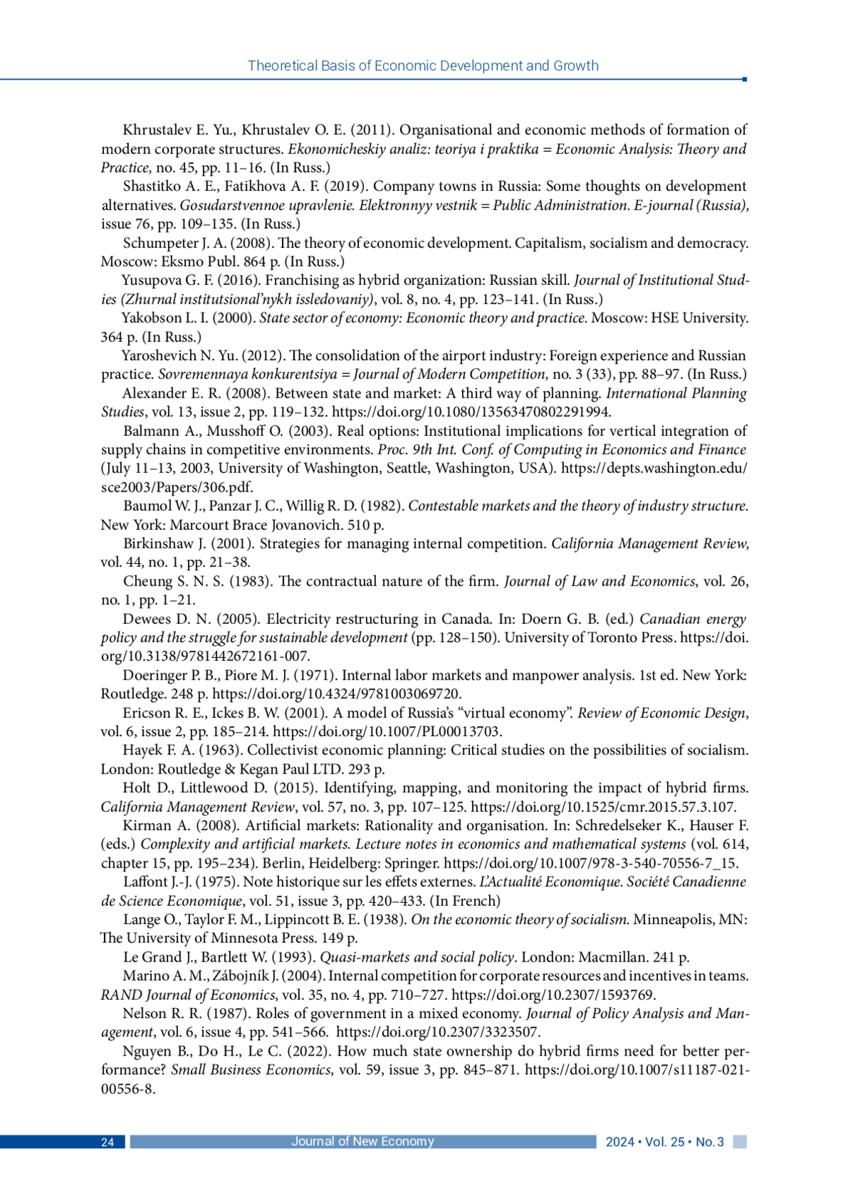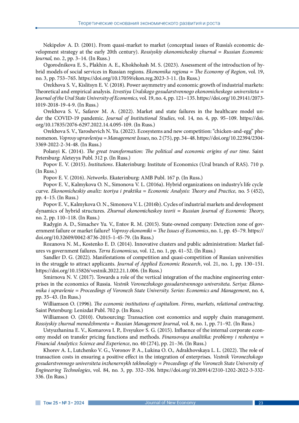 13. Мамедов О. Ю. (2018). Нерыночный драйвер смешанной экономики // Terra Economicus. Т. 16, № 1. С. 6-19. DOI: 10.23683/2073-6606-2018-16-1-6-19 EDN: XNGSZV