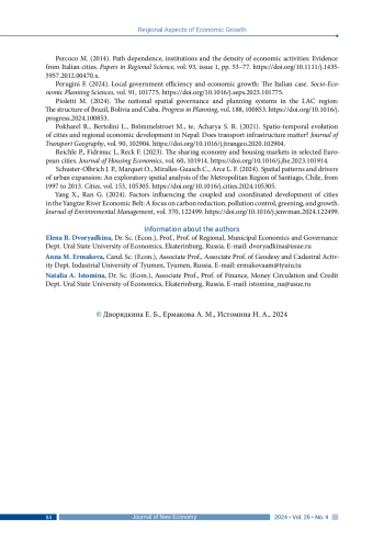 2. Анимица Е. Г. (2022). Эволюционные изменения в отечественной региональной экономике // Развитие парадигмальных идей в отечественной региональной экономике: монография / под ред. Я. П. Силина, В. Е. Ковалева. Екатеринбург: Уральский государственный экономический университет. С. 13-23. EDN: UBMDXL