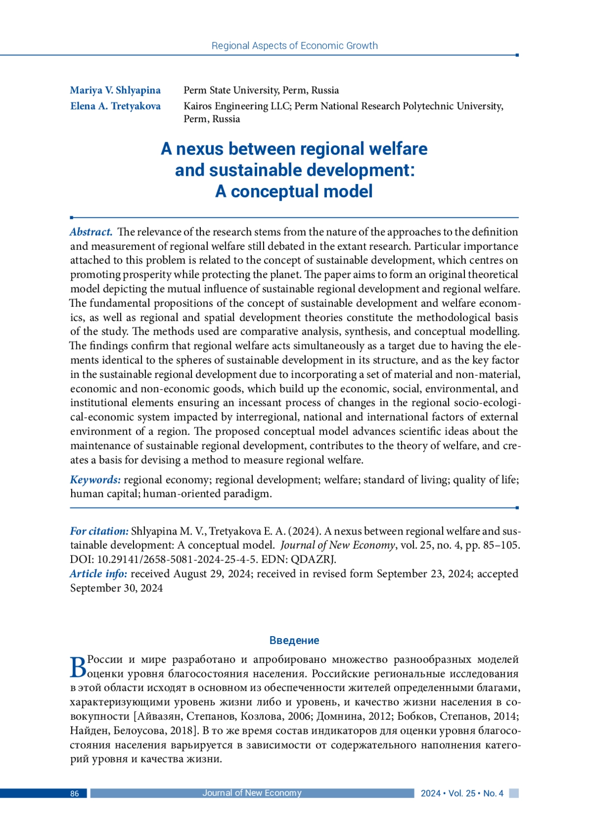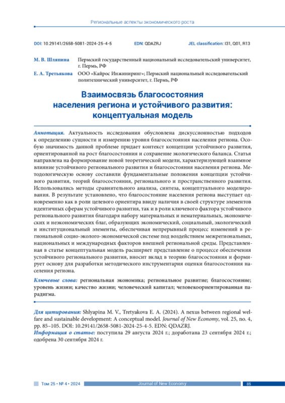 38. Шляпина М. В. (2024). Благосостояние населения как цель политики регионального развития // Вестник Пермского университета. Серия “Экономика”. Т. 19, № 1. С. 107-125. DOI: 10.17072/1994-9960-2024-1-107-125 EDN: NGWVKK