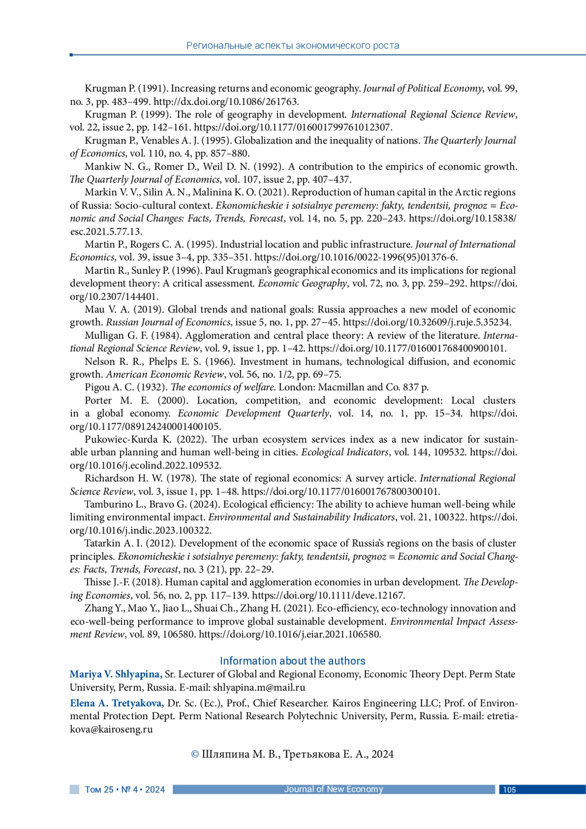 68. Krugman P. (1991). Increasing returns and economic geography. Journal of Political Economy, vol. 99, no. 3, pp. 483-499. DOI: 10.1086/261763 EDN: BJMFRF