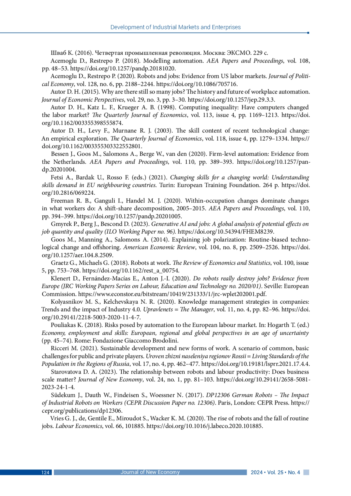 28. Starovatova D. A. (2023). The relationship between robots and labour productivity: Does business scale matter? Journal of New Economy, vol. 24, no. 1, pp. 81-103. DOI: 10.29141/2658-5081-2023-24-1-4 EDN: PSIBPS