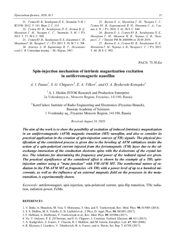 Панас А. И., Чигарев С. Г., Вилков Е. А., Бышевский-Конопко О. А. Спин-инжекционный механизм возбуждения собственной намагниченности в антиферромагнитной нанопленке 16