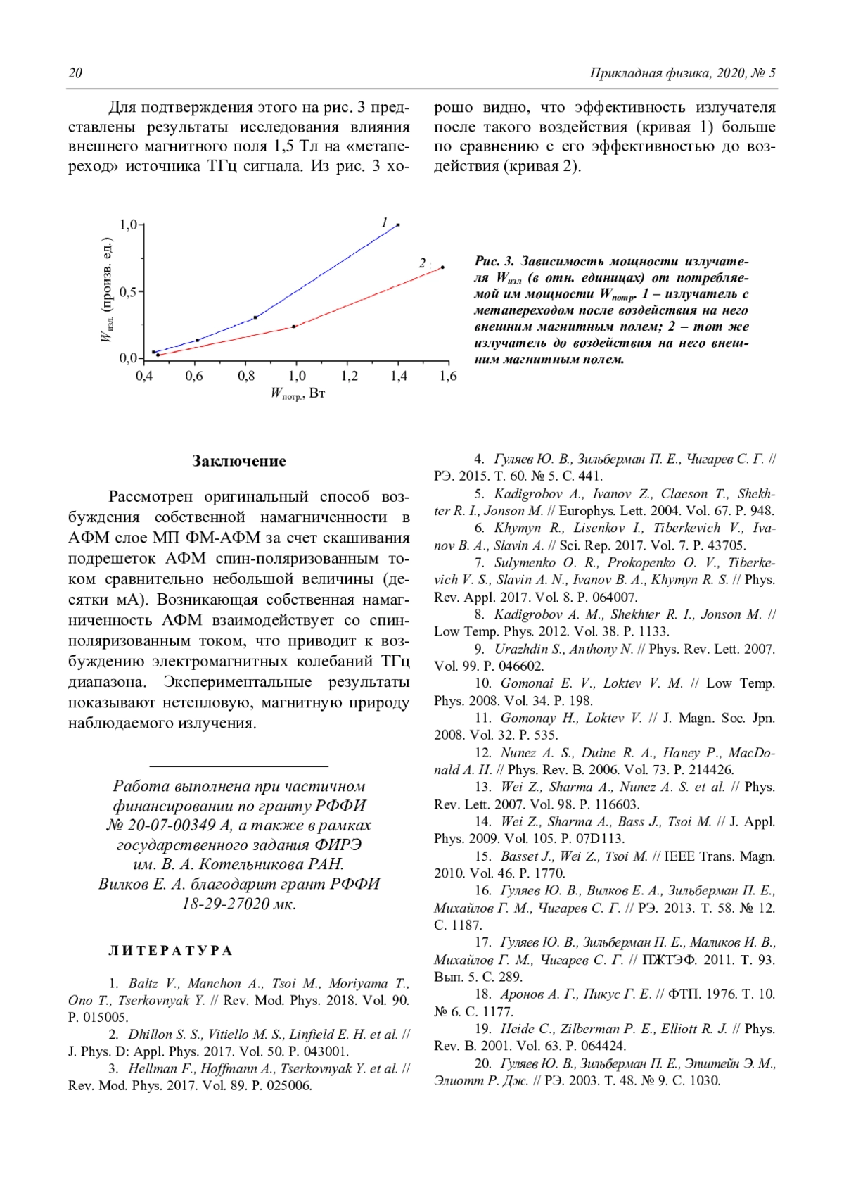 20. Гуляев Ю. В., Зильберман П. Е., Эпштейн Э. М., Элиотт Р. Дж. // РЭ. 2003. Т. 48. № 9. С. 1030.