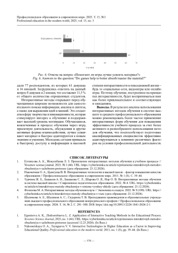 3. Турчина Ж. Е., Бакшеев А. И., Бакшеева С. Л., Шарова О. Я., Нор О. В. Интерактивные методы обучения в системе высшей школы // Современное педагогическое образование. 2022. № 4. URL: https://cyberleninka.ru/article/n/interaktivnye-metody-obucheniya-v-sisteme-vysshey-shkoly (дата обращения: 23.12.2024).