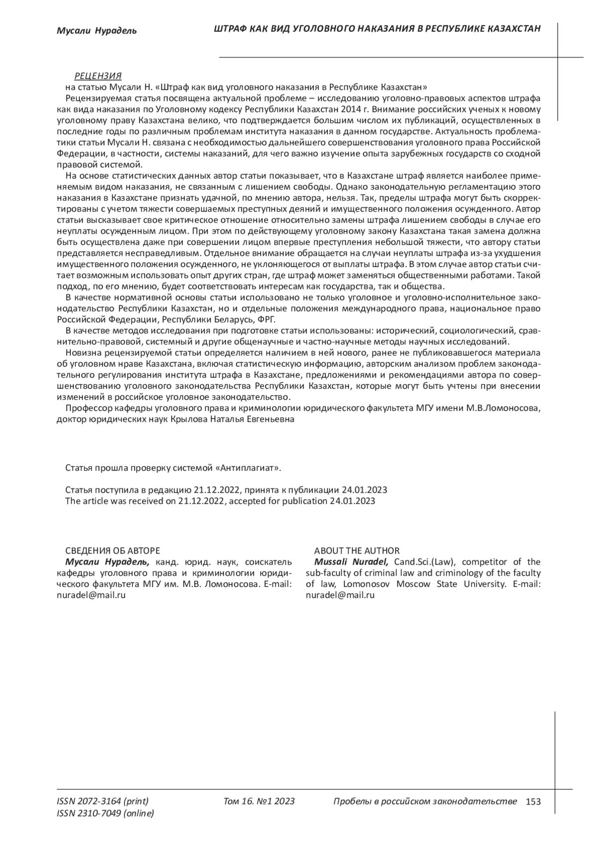 5. Тлепова Г. Интеграция германского уголовного права в современное уголовное право Казахстана // ZAN’GER. 2018. №1.