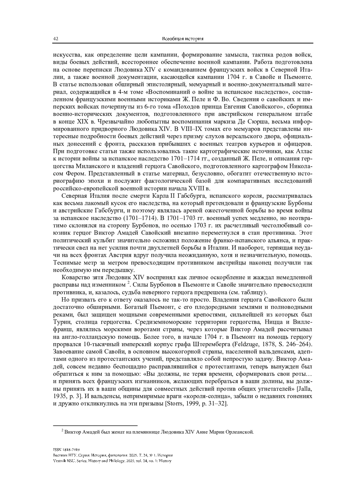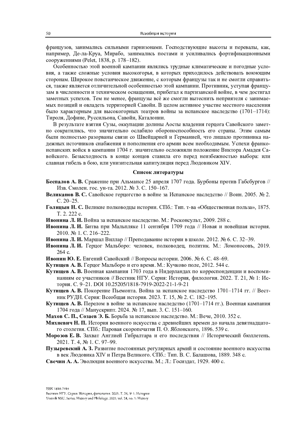 11. Кутищев А. В. Покорение Пьемонта. Война за испанское наследство 1701-1714 гг. // Вестник РУДН. Серия: Всеобщая история. 2023. Т. 15, № 2. С. 182-195.