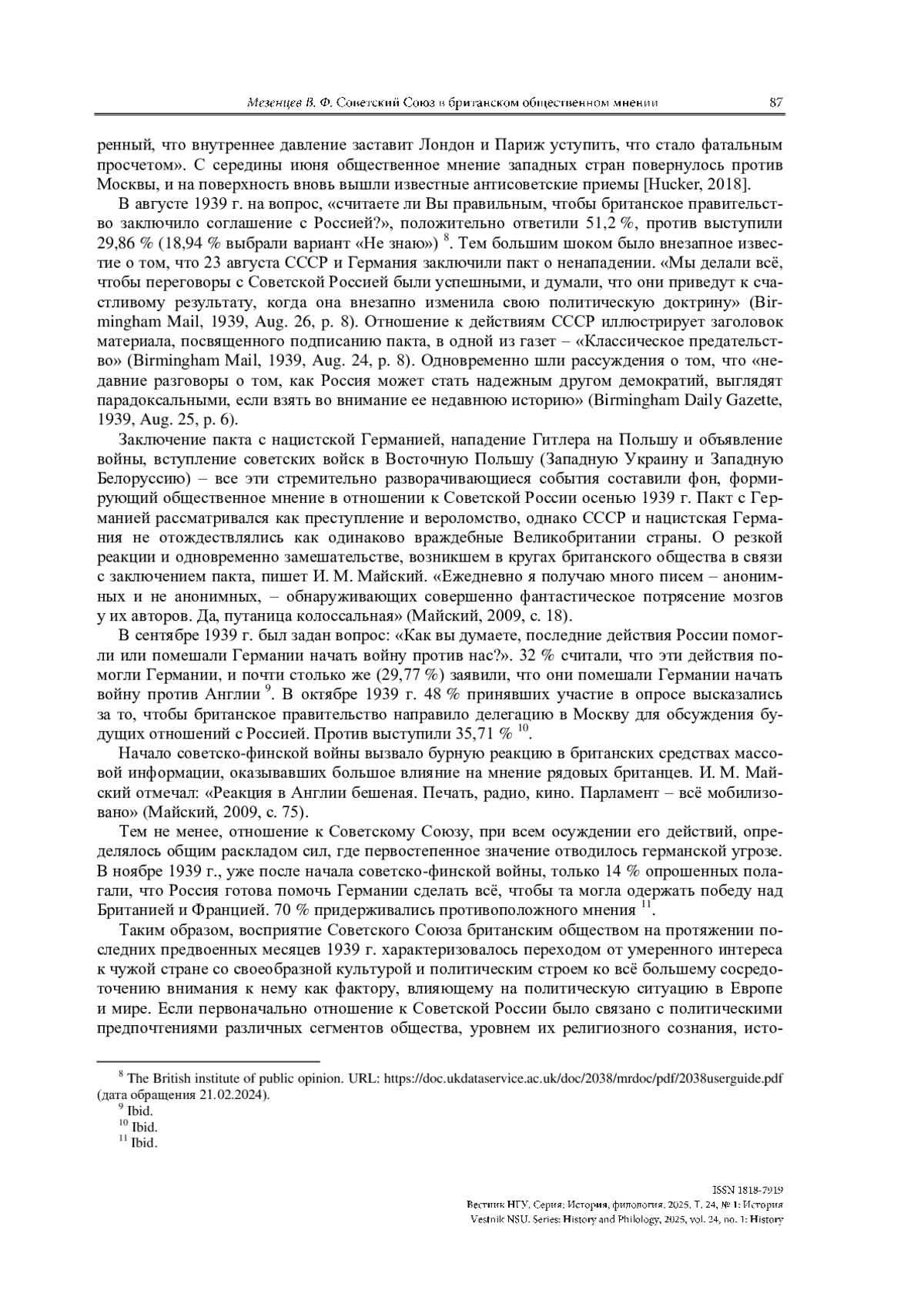 7. Hucker D. Public Opinion, the Press, and the Failed Anglo-Franco-Soviet Negotiations of 1939 // The International History Review. 2018. No. 40 (1). P. 65-85.