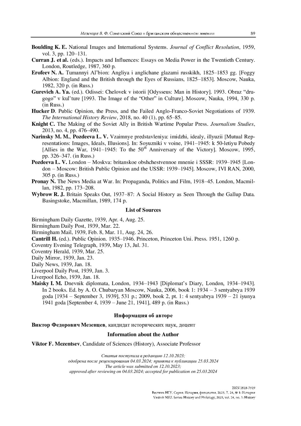 9. Knight C. The making of the Soviet Ally in British wartime popular press // Journalism Studies. 2013. No. 4. P. 476-490.