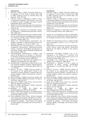 2. Aebi M.F., Linde, A., Delgrande, N. (2015). Is There a Relationship Between Imprisonment and Crime in Western Europe? European Journalon Criminal Policyand Research. 21(3), 425-446.