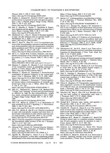 141. Peng Y., Gillis-Smith S., Jin H. et al. Sweet and bitter taste in the brain of awake behaving animals // Nature. 2015. V. 527. P. 512-515. 10.1038/nature1576 3. DOI: 10.1038/nature15763