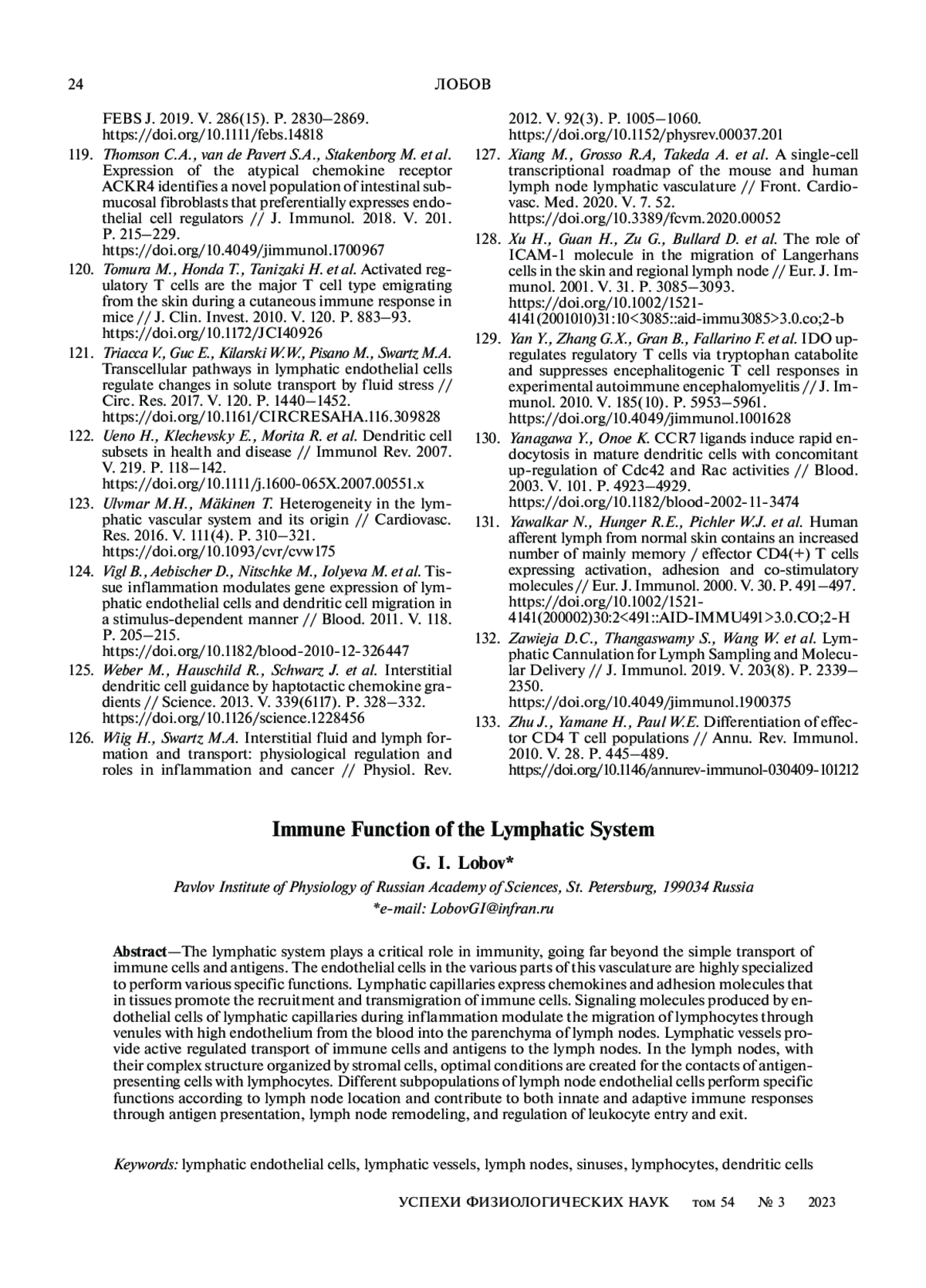 3. Лобов Г.И. Лимфатическая система в норме и при патологии // Успехи физиологических наук. 2022. Т. 53. № 2. С. 15–38. DOI: 10.31857/S0301179822020060 EDN: YEWDXY