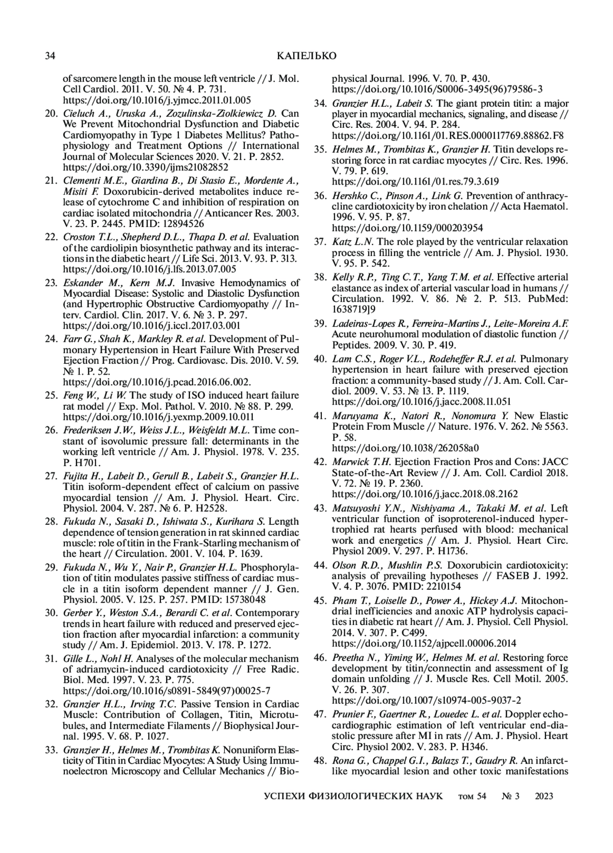 7. Капелько В.И. Роль титина в сократительной функции сердца (обзор) // Успехи физиологических наук. 2022. Т. 53. № 2. С. 1. EDN: CMTEAB