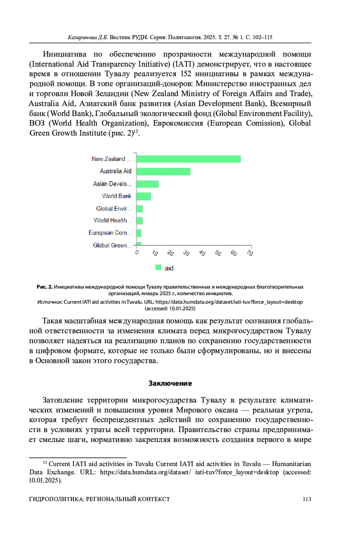 1. Abedinpour N. Взгляд на Тувалу - размышления о государственной ответственности и изменениях климата // Международное право и международные организации. 2010. № 3. С. 6-8. EDN: PWDVIF