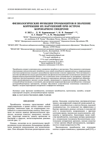 124. Weyrich A.S., Zimmerman G.A. Platelets in lung biology // Annu. Rev. Physiol. 2013. V. 75. P. 569. DOI: 10.1146/annurev-physiol-030212-183752