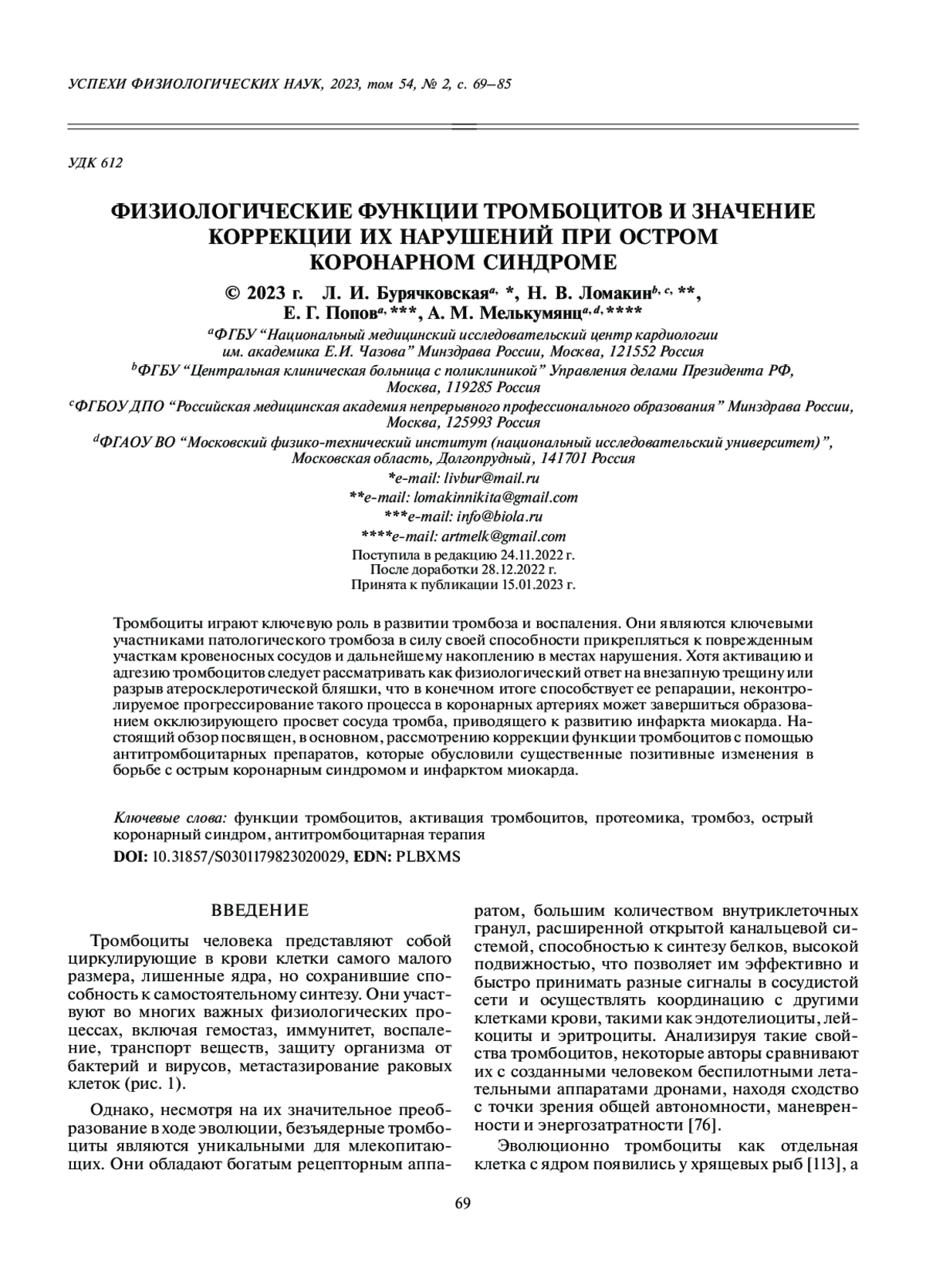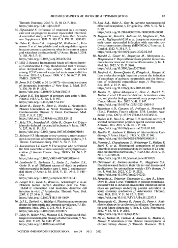 116. van der Meijden P., Heemskerk J. Platelet biology and functions: new concepts and clinical perspectives // Nat. Rev. Cardiol. 2019. V. 16. P. 166. DOI: 10.1038/s41569-018-0110-0 EDN: GEYUEU