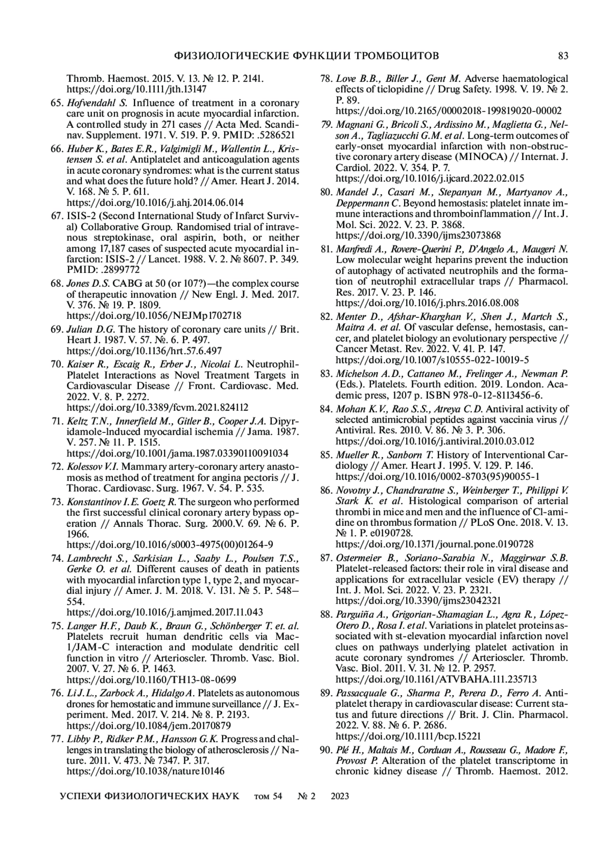 89. Passacquale G., Sharma P., Perera D., Ferro A. Antiplatelet therapy in cardiovascular disease: Current status and future directions // Brit. J. Clin. Pharmacol. 2022. V. 88. № 6. P. 2686. DOI: 10.1111/bcp.15221 EDN: QIYMUH