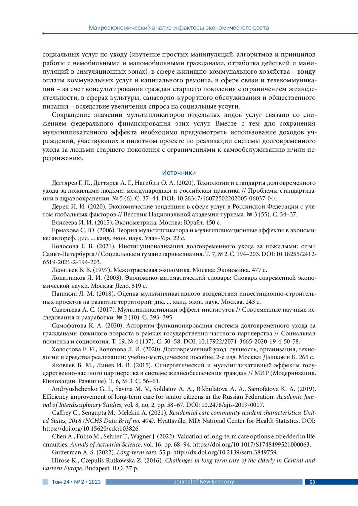 13. Andryushchenko G. I., Savina M. V., Soldatov A. A., Bikbulatova A. A., Samofatova K. A. (2019). Efficiency improvement of long-term care for senior citizens in the Russian Federation. Academic Journal of Interdisciplinary Studies, vol. 8, no. 2, pp. 58-67. DOI: 10.2478/ajis-2019-0017 EDN: IOIIWM