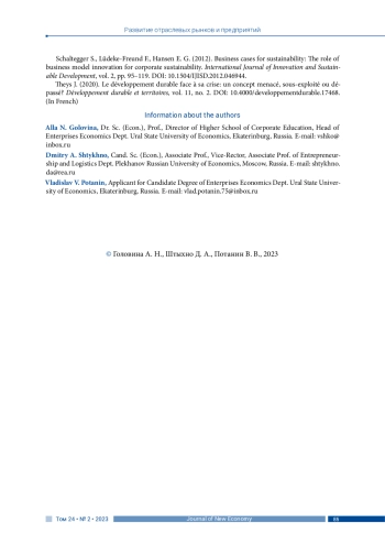 10. Потанин В. В., Головина А. Н. (2022). Структура социальной устойчивости промышленных экосистем // Социальные и экономические системы. № 6-2 (30.2). С. 195-204. EDN: ZDJGPS