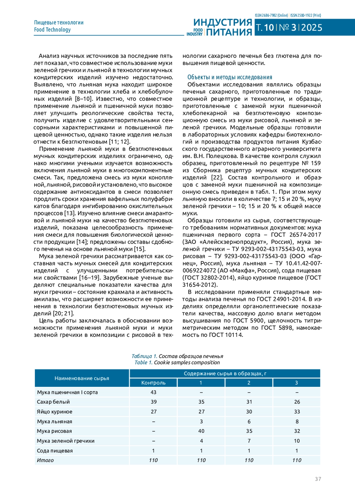 18. Санжаровская Н.С., Храпко О.П., Коломиец В.И. Разработка безглютенового печенья с улучшенными потребительскими свойствами // Ползуновский вестник. 2021. № 3. С. 61-67. 10.25712/ASTU.2072-8921.2021.03.008. DOI: 10.25712/ASTU.2072-8921.2021.03.008.EDN EDN: QTUYDD