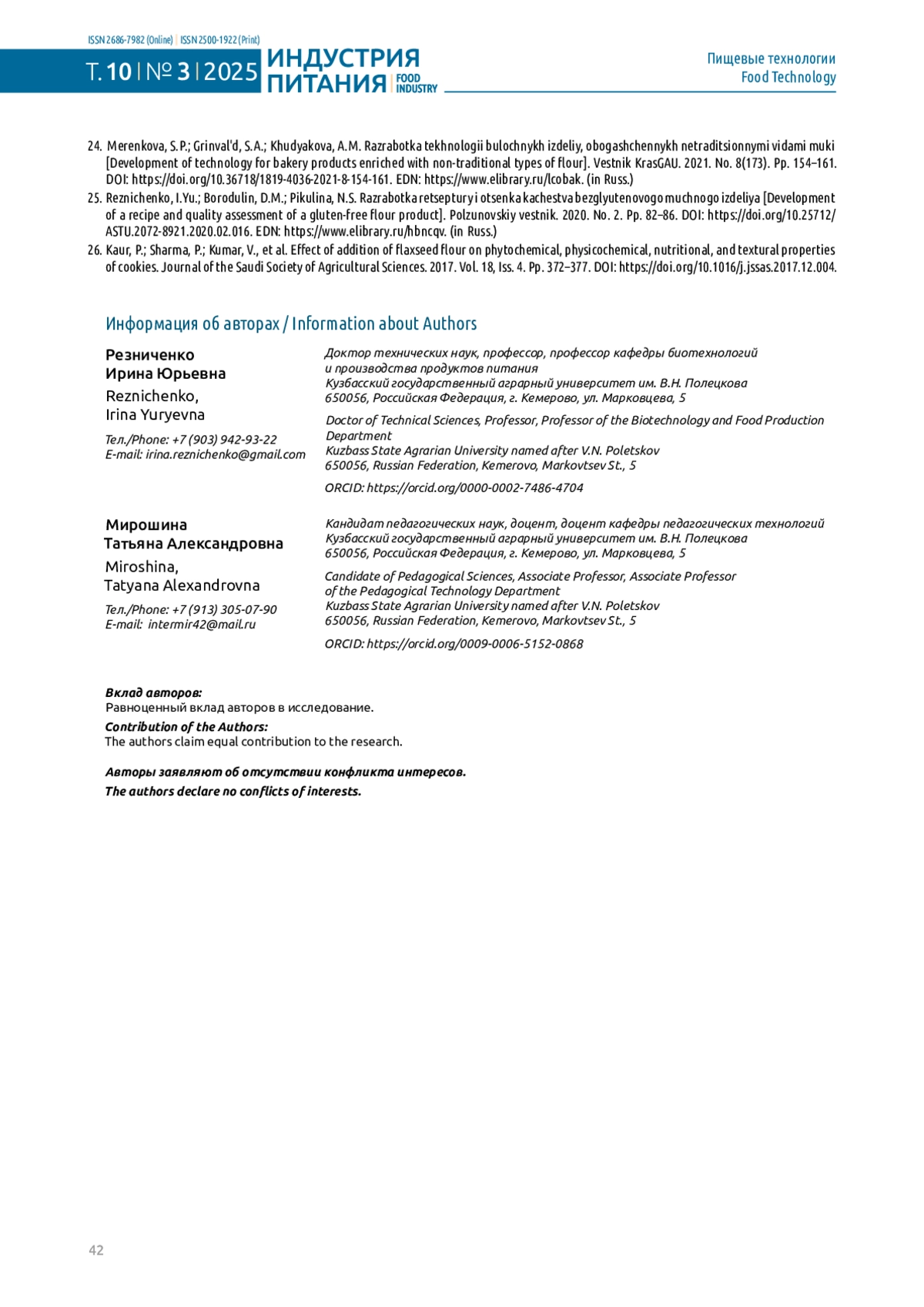 7. Резниченко И.Ю., Мирошина Т.А. Современные виды безглютенового сырья: перспективы применения в технологии мучных кондитерских изделий // Вестник КрасГАУ. 2024. № 6(207). С. 212-219. 10.36718/1819-4036-2024-6-212-219. DOI: 10.36718/1819-4036-2024-6-212-219.EDN EDN: YZCTZV