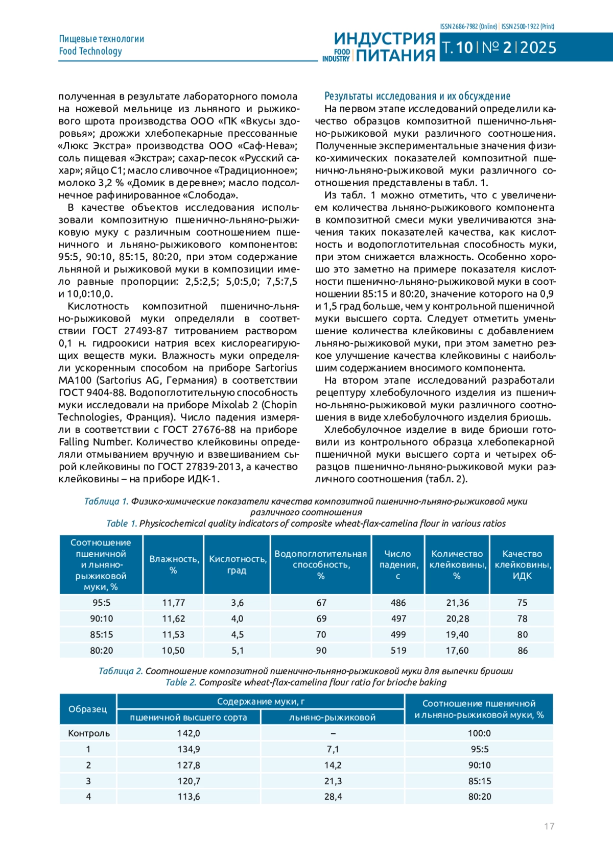 КАНДРОКОВ Р. Х., ФИРСАНОВА А. Р., СУВОРОВ О. А. ТЕХНОЛОГИЯ ХЛЕБОБУЛОЧНЫХ ИЗДЕЛИЙ В ВИДЕ БРИОШИ ИЗ ПШЕНИЧНО-ЛЬНЯНО-РЫЖИКОВОЙ МУКИ // ИНДУСТРИЯ ПИТАНИЯ. 2025. Т. 10 № 2