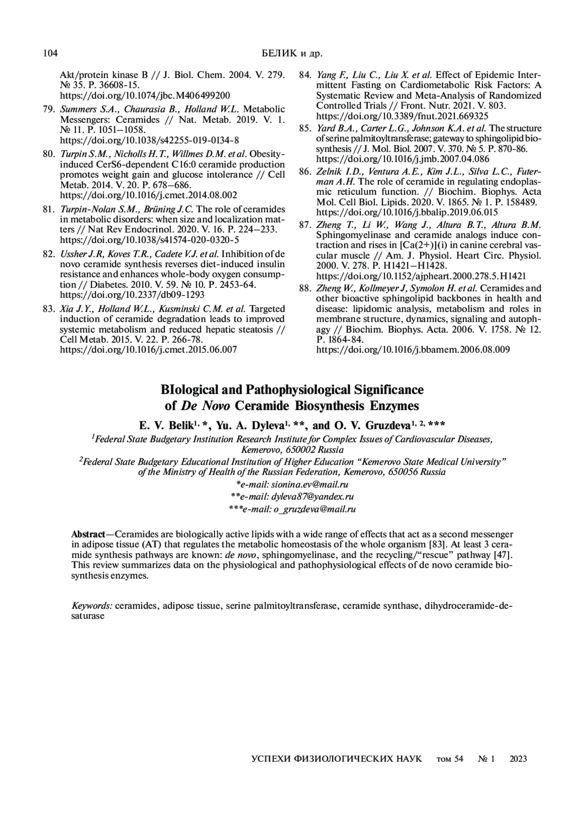 81. Turpin-Nolan S.M., Brüning J.C. The role of ceramides in metabolic disorders: when size and localization matters // Nat Rev Endocrinol. 2020. V. 16. P. 224–233. DOI: 10.1038/s41574-020-0320-5 EDN: APSEBY