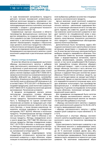 14. Лазарев В.А. Разработка изотонического напитка, обогащенного изолятом сывороточного белка и витаминным премиксом // Вестник Южно-Уральского государственного университета. Серия: Пищевые и биотехнологии. 2024. Т. 12, № 3. С. 31-40. 10.14529/food240304. DOI: 10.14529/food240304.EDN EDN: PFBABU