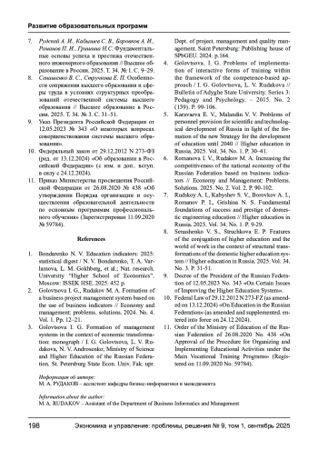 8. Сенашенко В. С., Стручкова Е. П. Особенности сопряжения высшего образования и сферы труда в условиях структурных преобразований отечественной системы высшего образования // Высшее образование в России. 2025. Т. 34. № 3. С. 31-51. EDN: OBSGTD
