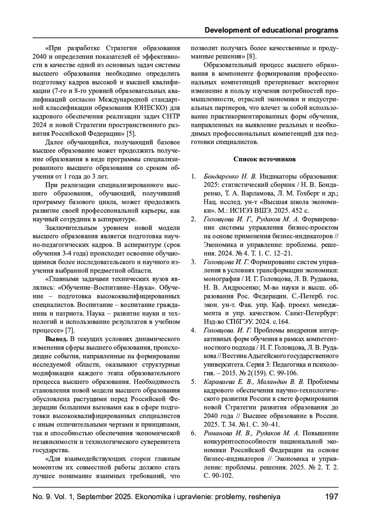 5. Караваева Е. В., Маландин В. В. Проблемы кадрового обеспечения научно-технологического развития России в свете формирования новой Стратегии развития образования до 2040 года // Высшее образование в России. 2025. Т. 34. №1. С. 30-41. EDN: MRNZIA