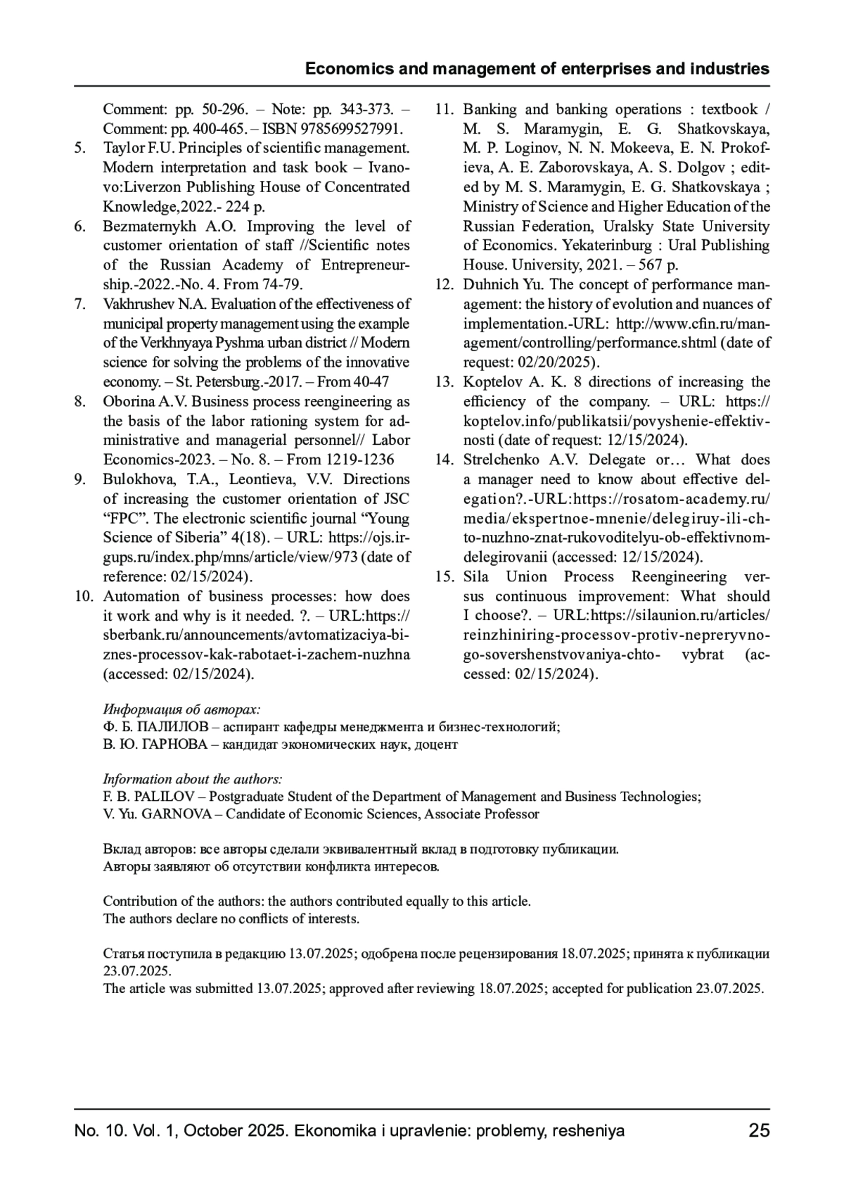 8. Оборина А.В. Реинжиниринг бизнес-процессов, как основа системы нормирования труда административно-управленческого персонала// Экономика труда-2023. - № 8. - С. 1219-1236. EDN: GKKYST
