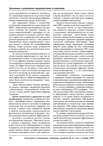 Статья: ТРАНСАКЦИОННОЕ КОНФИГУРИРОВАНИЕ ЦИФРОВЫХ ВЗАИМОДЕЙСТВИЙ БИЗНЕС-ЭКОСИСТЕМЫ (2025)
