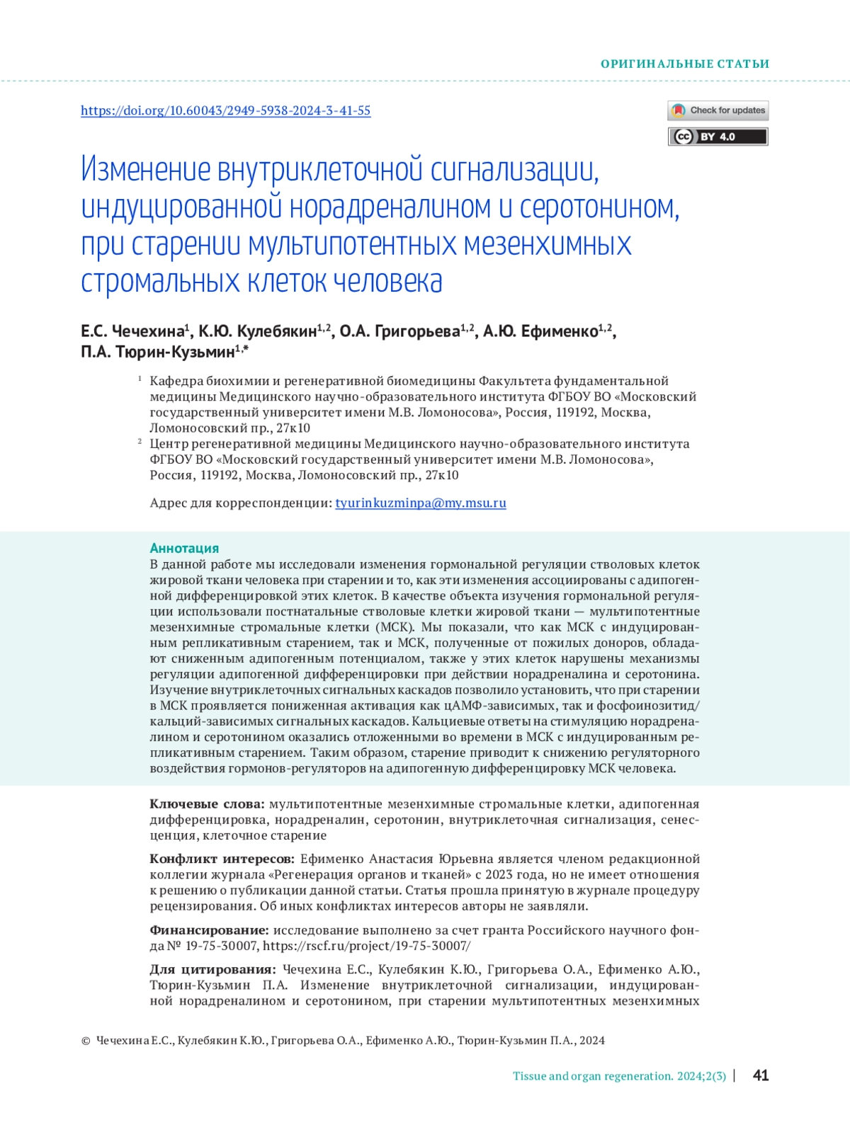 23. Chechekhin VI, Kulebyakin KY, Kalinina NI, Tyurin-Kuzmin PA. Noradrenaline and serotonin-dependent sensitization of MSCs to noradrenaline. MethodsX. 2024;12:102587.