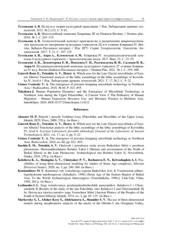Статья: Технико-типологическая характеристика микронуклеусов 3Б культурного горизонта стоянки Коврижка IV (Витим, Байкало-Патомское нагорье) с применением морфометрии на основе 3D-моделирования (2025)