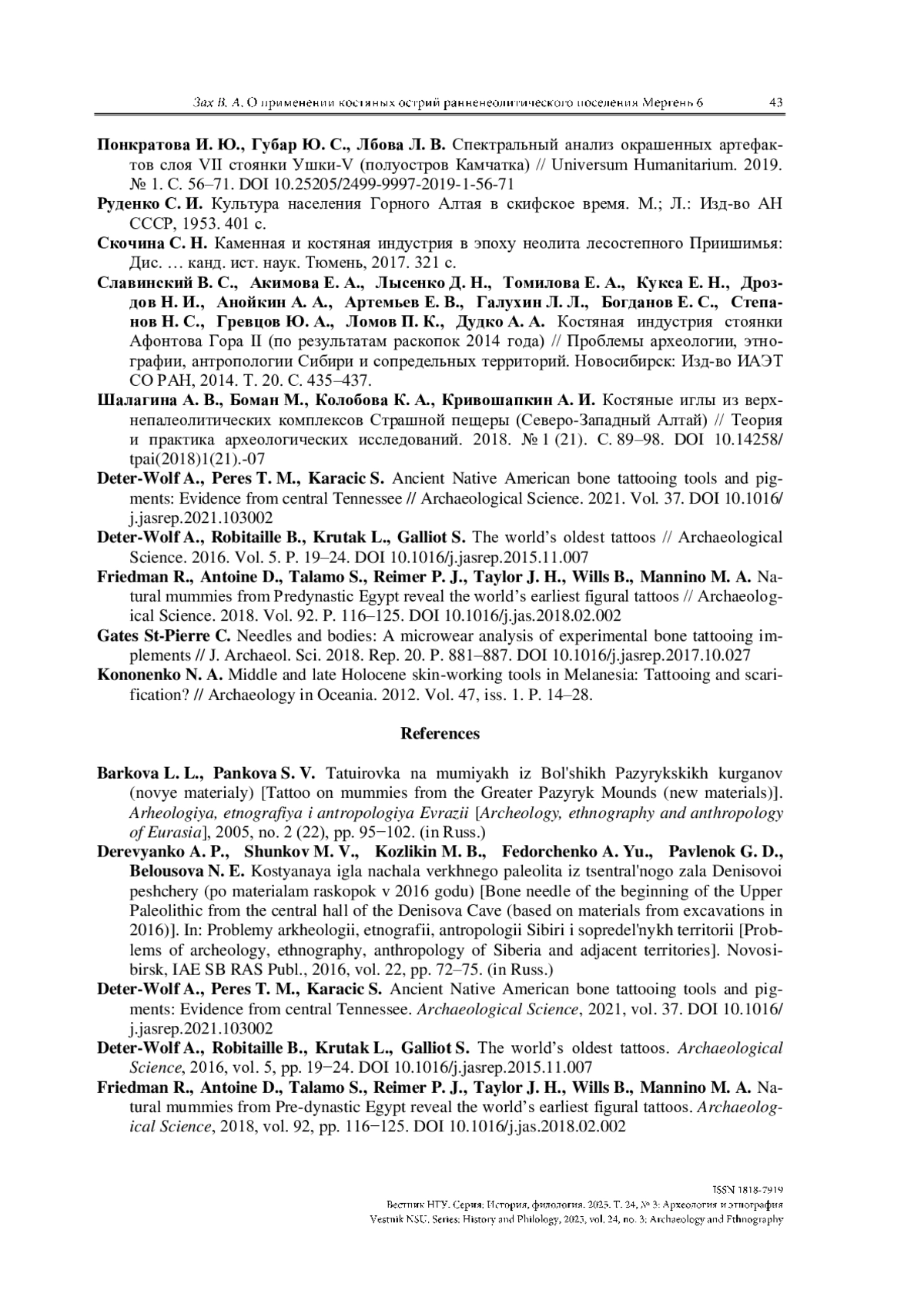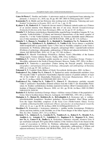 24. Gates St-Pierre C. Needles and bodies: A microwear analysis of experimental bone tattooing implements // J. Archaeol. Sci. 2018. Rep. 20. P. 881-887. https://doi.org/10.1016/j.jasrep.2017.10.027