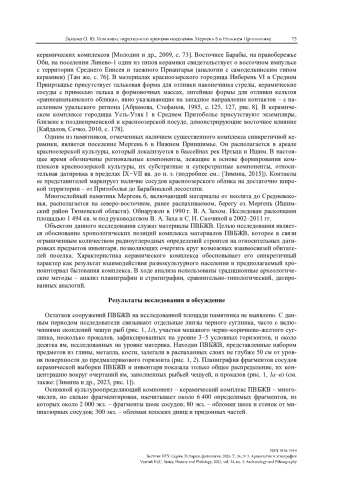 14. Зимина О. Ю., Зах В. А., Скочина С. Н. Керамический комплекс переходного времени от бронзы к железу поселения Мергень 6 в Нижнем Приишимье (Западная Сибирь) // Вестник археологии, антропологии и этнографии. 2023. № 4 (63). С. 120-133 https://doi.org/10.20874/2071-0437-2023-63-4-9