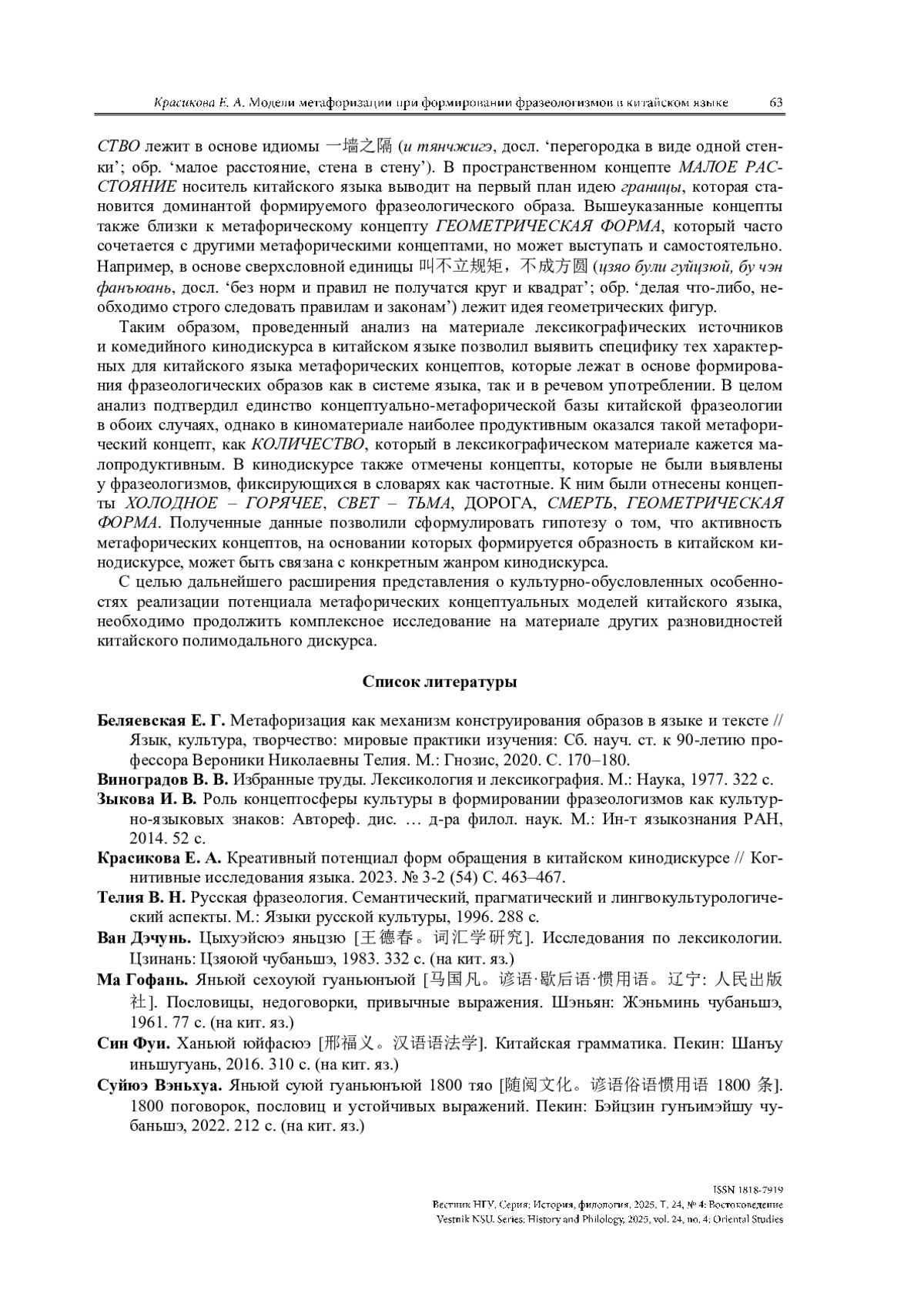 4. Красикова Е. А. Креативный потенциал форм обращения в китайском кинодискурсе // Когнитивные исследования языка. 2023. № 3-2 (54) С. 463-467.