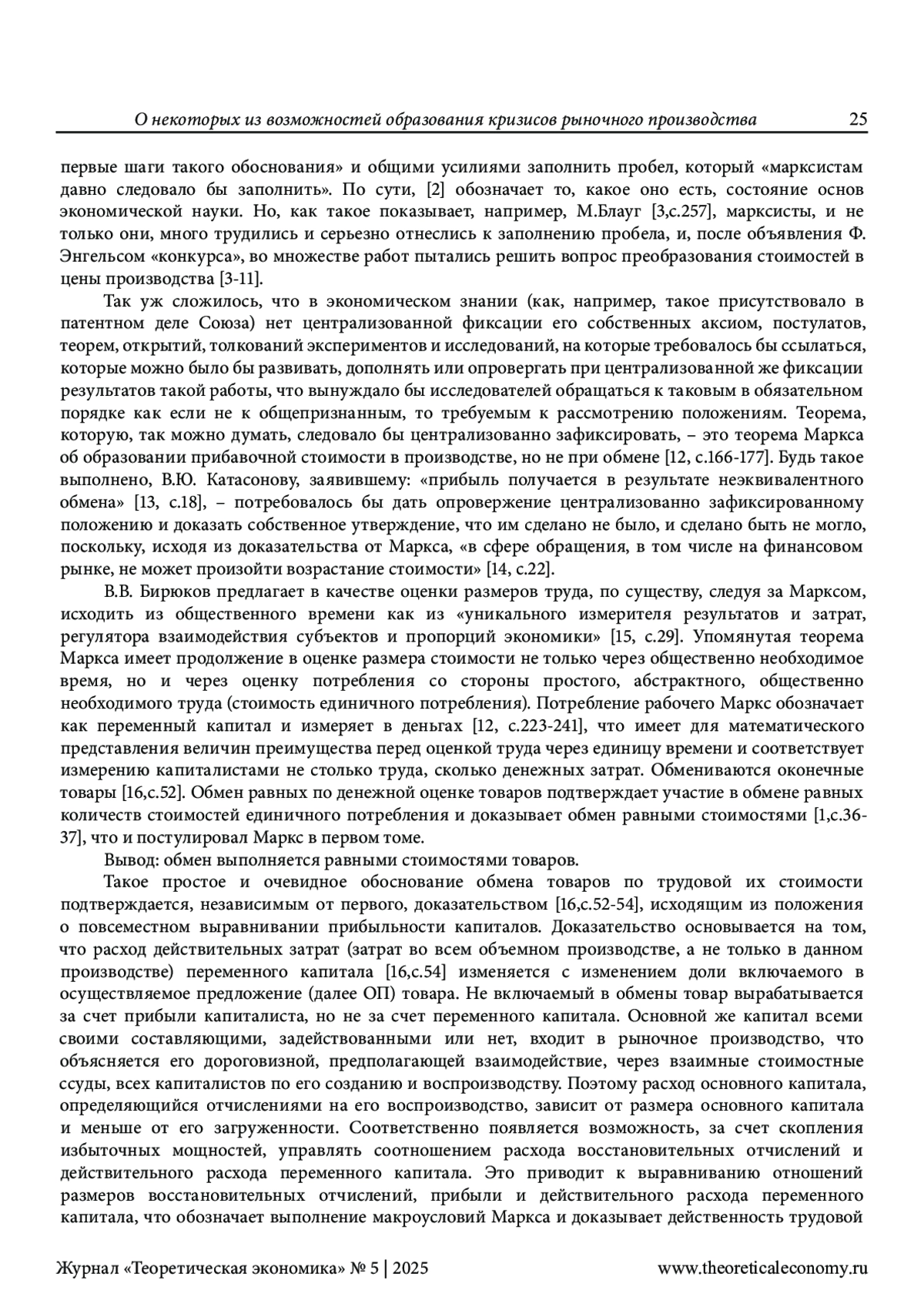 15. Бирюков, В.В. Поиск современной политико-экономической парадигмы и актуализация идей классический политической экономии/В.В. Бирюков. - Текст: электронный // Теоретическая экономика. - 2024 - №12. - С.22-32. - URL: http://www.theoreticaleconomy.ru (Дата публикации: 30.12.2024).