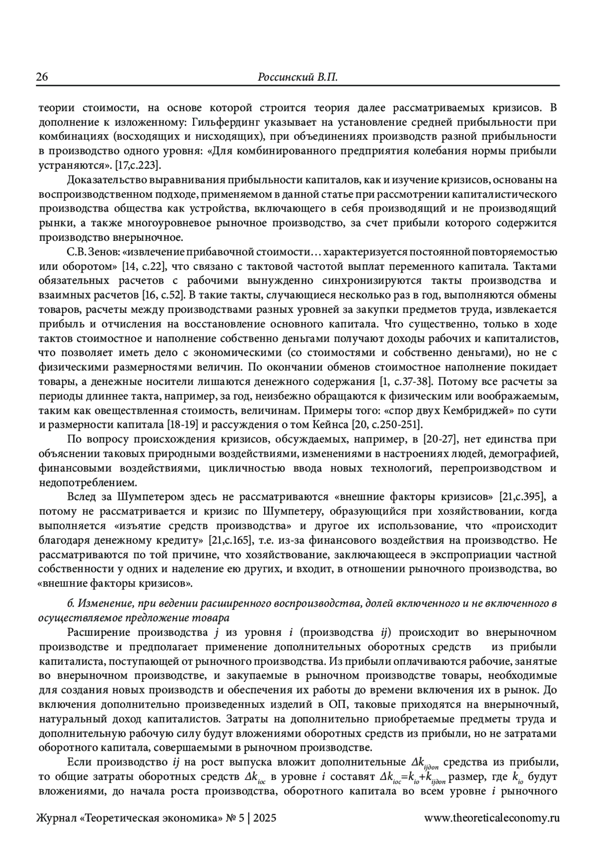 28. Россинский В.П. “Некоторые ограничения росту действительного спроса при ведении расширенного воспроизводства в поле благоприятных естественных запасов” // Сибирский научный сборник: экономические науки: сборник научных трудов. Выпуск 1 / Под общ. ред. С.С. Чернова. - Новосибирск: Издательство ЦРНС, 2017. - с5-29.