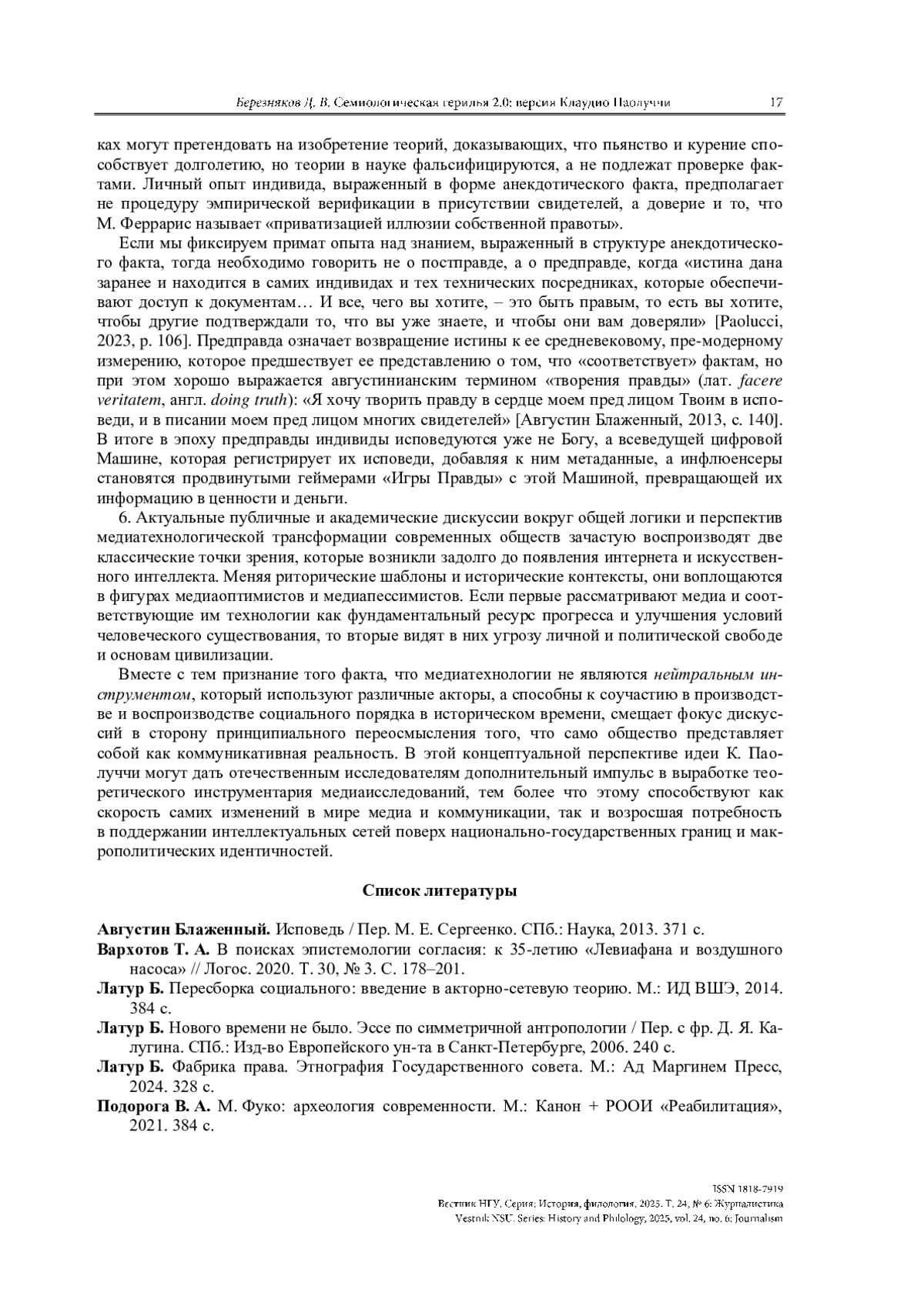 17. Paolucci C. Pre-Truth: Fake News, Semiological Guerrilla Warfare, and Some Other Media and Communication “Revolutions” // Media and Communication. 2023. Vol. 11, iss. 2. P. 101-108. https://doi.org/10.17645/mac.v11i2.6628
