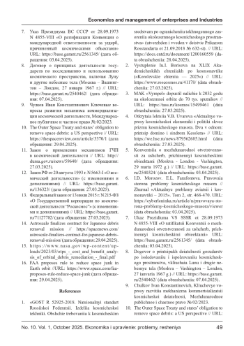 6. И.Д. Морозов. Е.Л. Фарафонтова. Правовая сторона проблемы космического мусора // Журнал “Актуальные проблемы авиации и космонавтики - 2015”. Том 2, стр. 468470. URL: https://cyberleninka.ru/article/n/pravovaya-storona-problemy-kosmicheskogomusora/viewer (дата обращения: 03.04.2025).