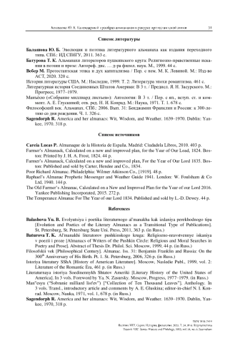 Универсальный тип средневековых альманахов-календарей, измеряющих временные отрезки и обладающих прогностическими функциями, исторически образует две основные транснациональные модели. Первая представлена сначала франко-германскими, а затем, в наиболее последовательном воплощении, российскими литературными «карманными книжками», где связь с календарем эксплицирована поэтологически. Вторая модель – англосаксонская, в более выраженном варианте унаследовавшая функциональный календарный прообраз, имплементирует его в практическом, религиозно-моральном отношении. По отношению к альманахам (российским, американским), ориентированным на европейский образец, утверждение самого альманашного типа совпало с эпохой романтизма. На примере отдельных, преимущественно серийных, американских альманахов, хронологически относящихся к романтической поре, рассматривается тип альманаха как коммуникативного канала распространения ценностей протестантской этики.