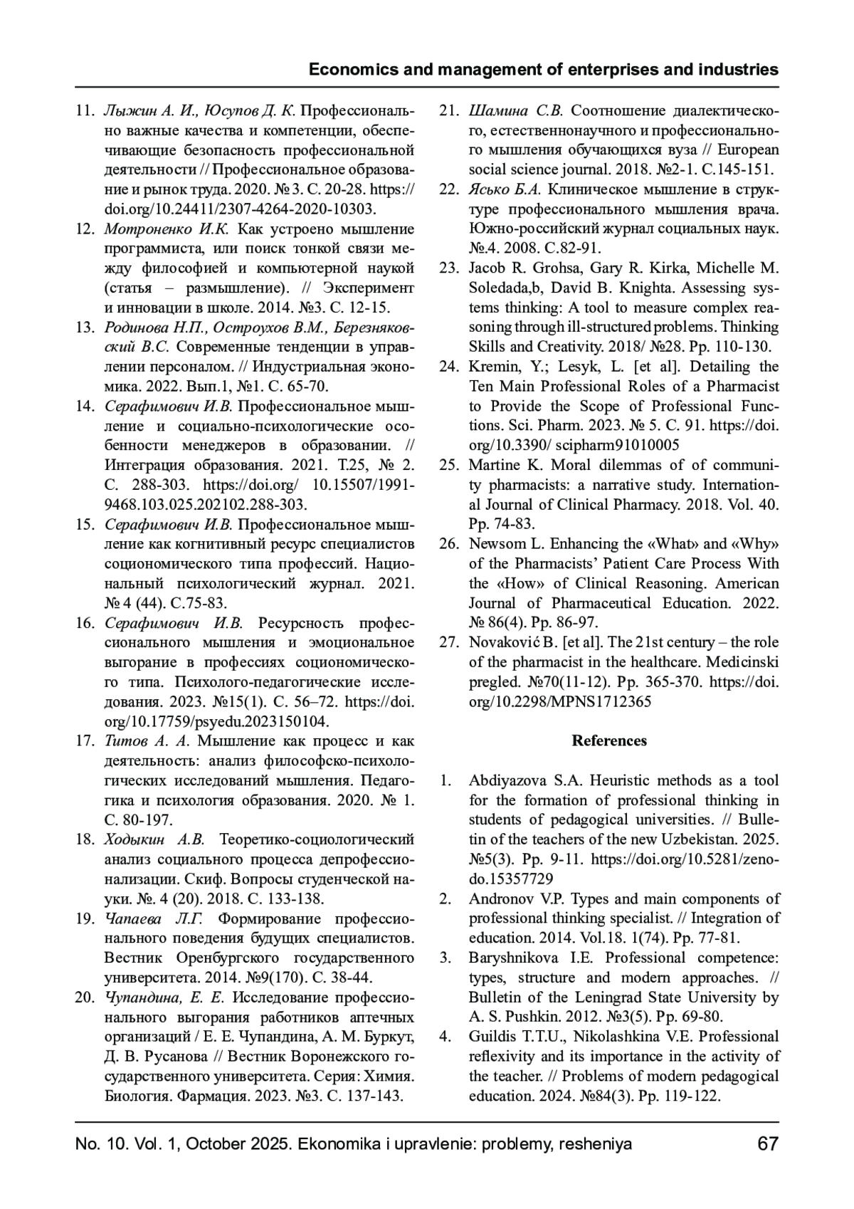 14. Серафимович И.В. Профессиональное мышление и социально-психологические особенности менеджеров в образовании. // Интеграция образования. 2021. Т.25, № 2. С. 288-303. DOI: 10.15507/19919468.103.025.202102.288-303 EDN: PAQJCE