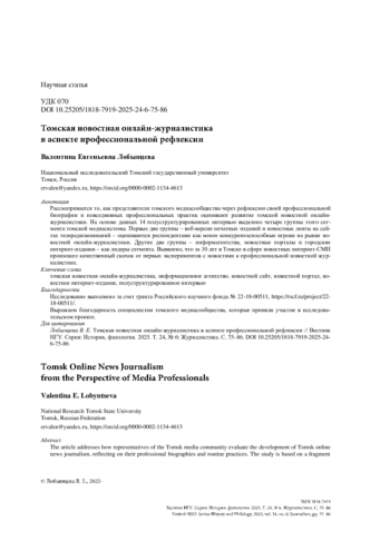 Статья: Томская новостная онлайн-журналистика в аспекте профессиональной рефлексии (2025)