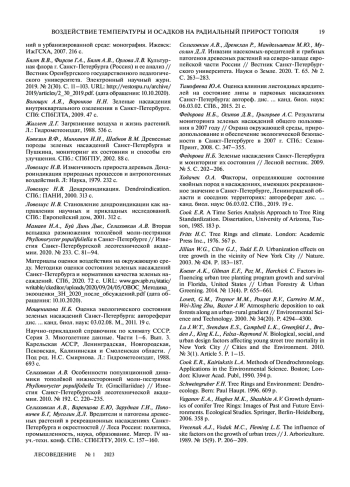 21. Федорова Н.Б. Зеленые насаждения Санкт-Петербурга и мониторинг их состояния // Лесной вестник. 2009. № 5. С. 202-206. EDN: KXXXGT