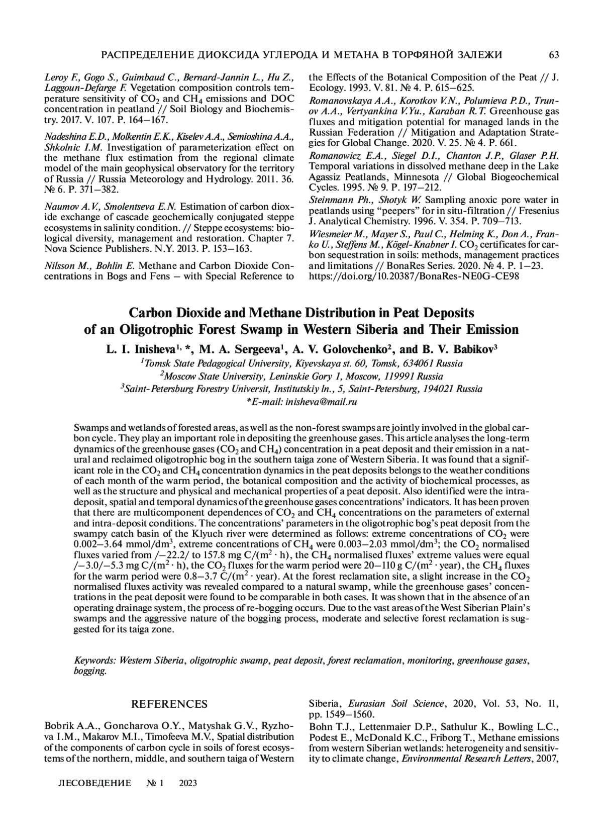 17. Махов Г.А., Бажин Н.М., Ефремова Т.Т. Эмиссия метана из болот междуречья рек Оби и Томи // Химия в интересах устойчивого развития. 1999. № 2. С. 619–622.